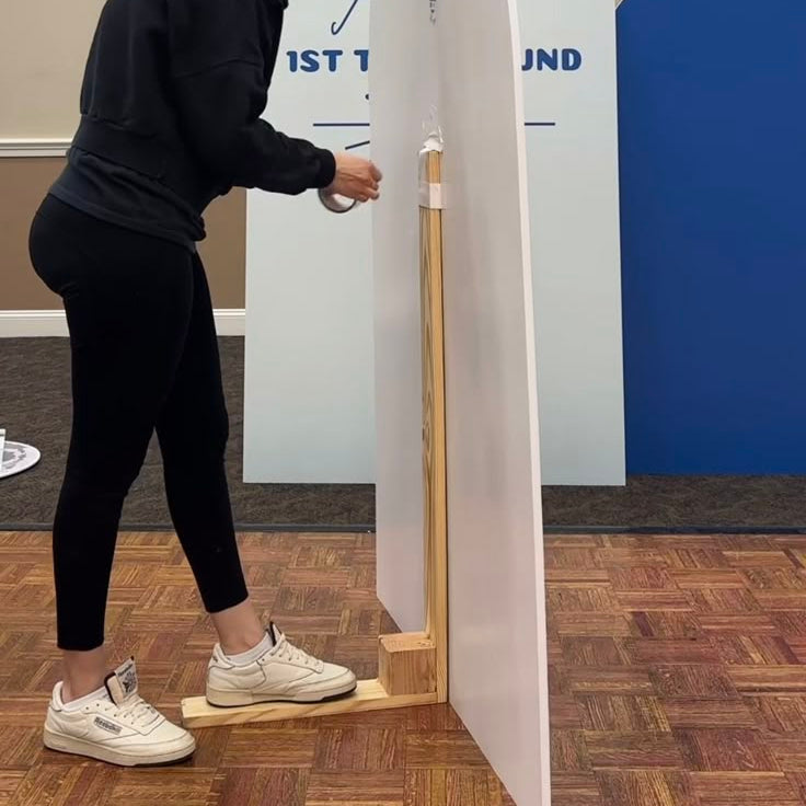 Si le panneau est très haut (plus de 150cm), assurez-vous que l'équerre soutienne le dos du panneau (idéalement jusqu'à mi-hauteur) afin qu'il tienne parfaitement droit.